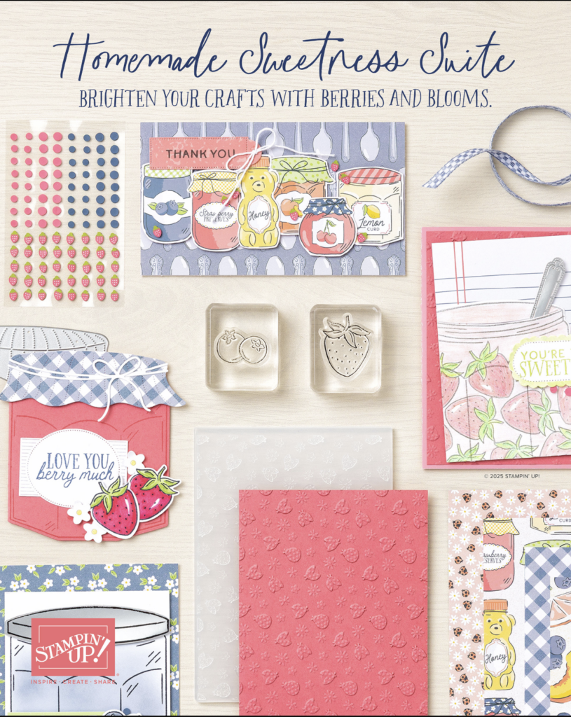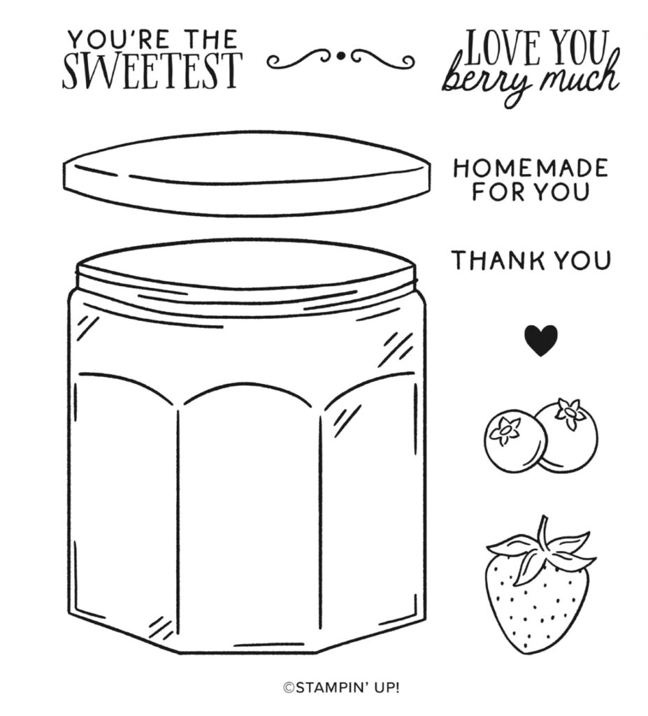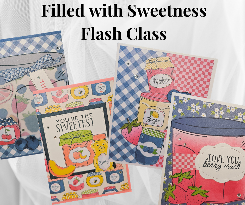Filled with Sweetness brings a bit of spring into our chilly winter months. Who doesn’t love a fresh berry or two? This set makes the freshest cards! One thing to mention here is that you will need a large block or positioning tool to stamp the jar. The recommended blocks for the jar is Clear Block F: 4-7/8″ x 6″ . The best part is the Designer paper that coordinates with this stamp set that is part of this class packet. The paper currently is not available- but I have enough to create 8 class kits.