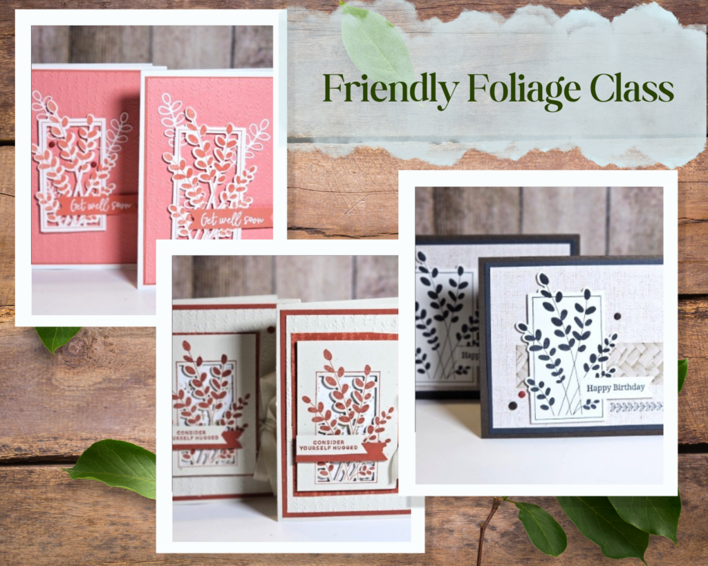 Create beautiful, heartfelt cards with the Friendly Foliage Bundle in this relaxed and inspiring 6-card class. You’ll make six timeless handmade cards that feature soft greenery and warm, encouraging sentiments—perfect for sending love, comfort, and support any time of year. The Friendly Foliage Bundle makes it easy to stamp and cut elegant sprigs that pair effortlessly with thoughtful greetings, giving you cards you’ll be proud to share.